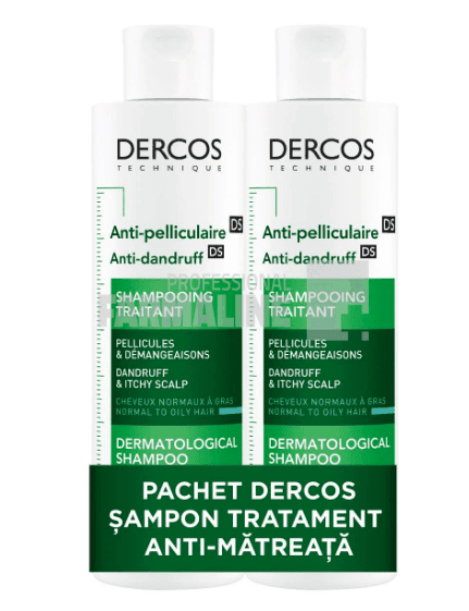 Vichy Dercos Pachet Sampon anti-matreata par normal/gras 200 ml 1 + 1 50% din al II lea