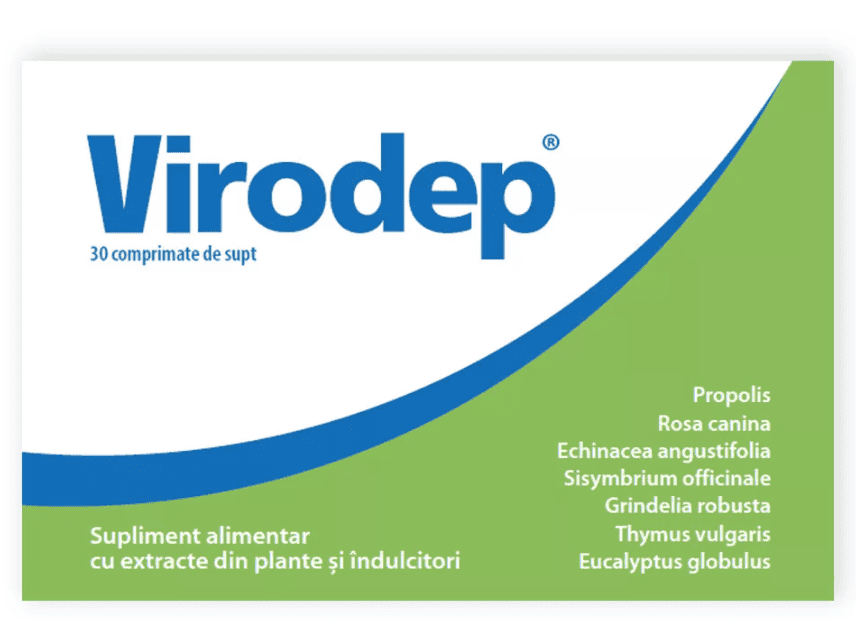 Virodep este un supliment alimentar pe baza de extracte vegetale standardizate (propolis, maces, echinacea, mustar salbatic, grindelia, cimbru de cultura, eucalipt si indulcitori), indicat in preventia si tratamentul infectiilor respiratorii.