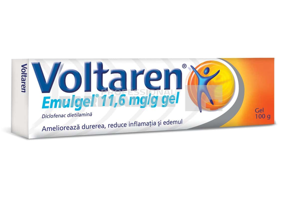 DescriereVoltaren Emulgel conţine substanţa activă diclofenac care face parte din grupul de medicamente denumite antiinflamatoare nesteroidiene (AINS). Este special creat pentru a fi absorbit în piele prin masaj. Voltaren Emulgel este utilizat pentru a calma durerea şi a reduce inflamaţia şi edemul în cazul unor afecţiuni dureroase care afectează încheieturile şi muşchii.Poate fi utilizat la tratarea următoarelor afecţiuni:Adulţi şi adolescenţi cu vârsta de 14 ani şi peste:- Traumatisme ale articulaţiilor şi muşchilor (de exemplu entorse, luxaţii, echimoze, dureri de spate, traumatisme din sport);- Tendinita (de exemplu epicondilita laterală).Numai adulţi (cu vârsta de 18 ani şi peste):- Artrita uşoară a genunchilor sau degetelor.CompozitieDiclofenac dietilamina 11,6 mg/g .Mod de administrareUtilizaţi întotdeauna acest medicament exact aşa cum este descris în acest prospect sau aşa cum v-a spus medicul dumneavoastră sau farmacistul. Discutaţi cu medicul sau cu farmacistul dacă nu sunteţi sigur.Pentru adulţi şi adolescenţi cu vârsta peste 14 ani: Aplicaţi Voltaren Emulgel de 3 sau 4 ori pe zi, pe suprafaţa dureroasă.ProducatorGalaxosmithklineMod de prezentareFlacon 100 g
