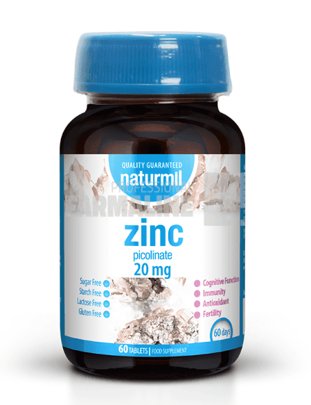 Descriere Mineral esențial cu beneficii la nivelul întregului organism. • Conține zinc picolinat, 20mg/capsulă • ajunge până la 60 de zile de administrareContribuie la: • menținerea funcționării normale a sistemului imunitar • menținerea fertilității și buna funcționarea a a paratului reproducător • menținerea sanatatii pielii, a unghiilor și a părului • susținerea acumulării unei mase musculare sănătoase • susținerea rezistenșei la efort în cazul sportivilor • susținerea procesului de divizare celulară normal • funcția congnitivă normal • metabolismul normal al macronutrienților • protecția celuleor împotriva stresului oxidative • menținerea sănătății sistemului ososCompoziție/ 1 tabletă: Zinc picolinate 20 mg (200% VNR*) *Valori de referință pentru nutriențiMod de administrare: Câte 1 tabletă/zi sau conform recomandării consultantului de specialitate.ProducatorDietmedMod de prezentareFlacon cu 60 capsule